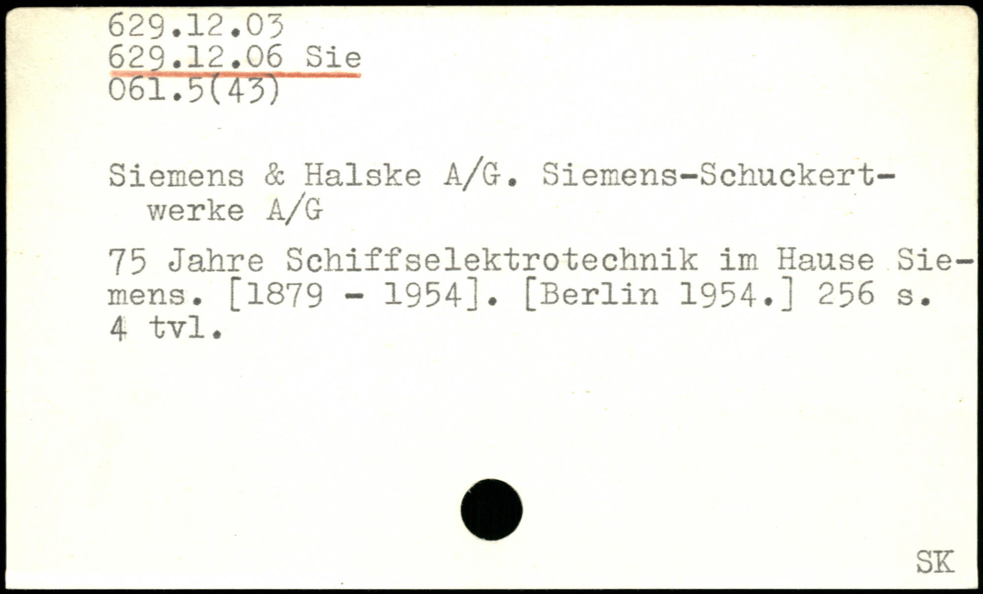 Siemens & Halske A/G. Siemens-Schuekert-werke A/G 75 Jahre Schiffselektrotechnik im Hause Siemens. [1879 - 1954].