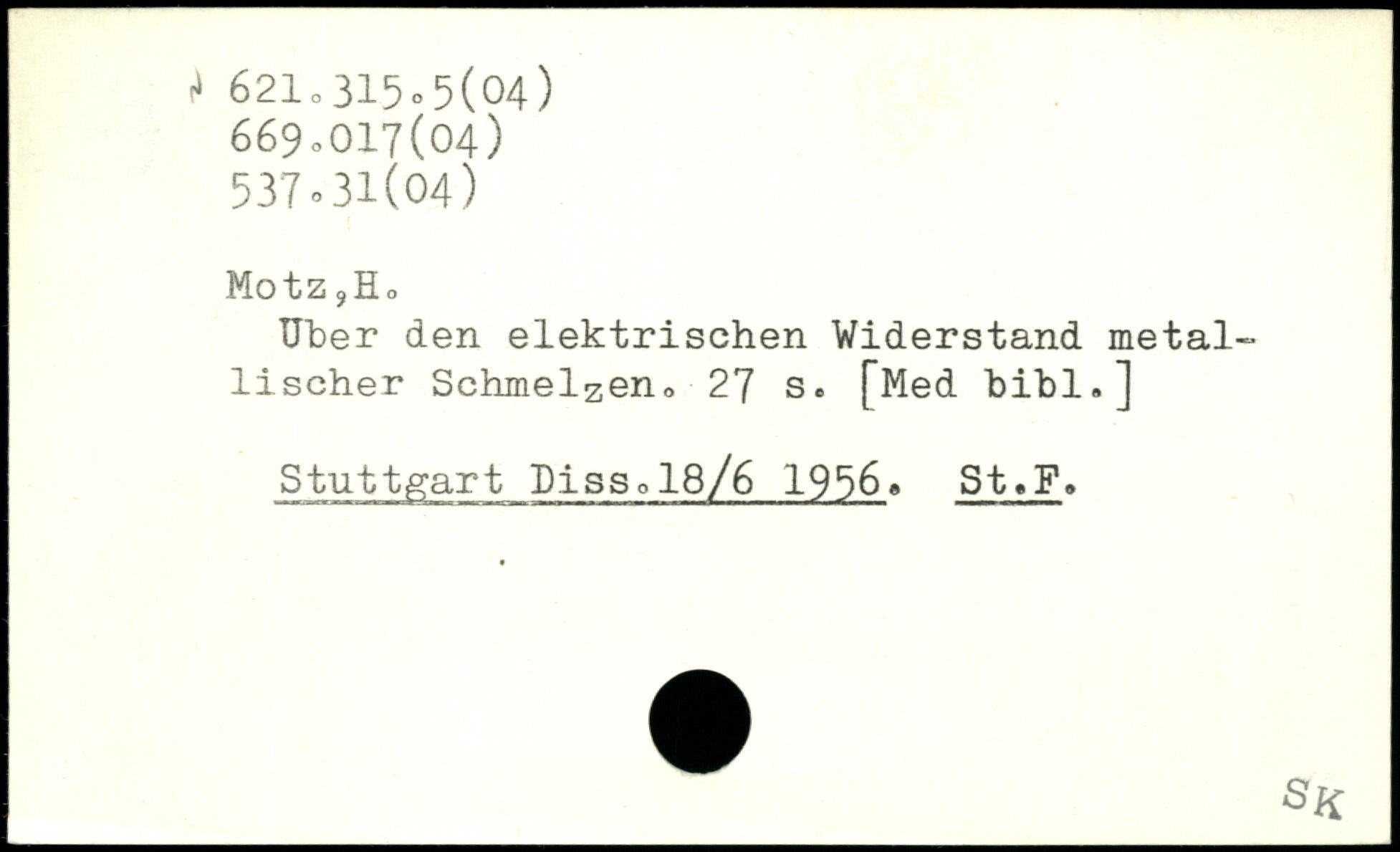 Uber den elektrischen Widerstand metallischer Schmelzen