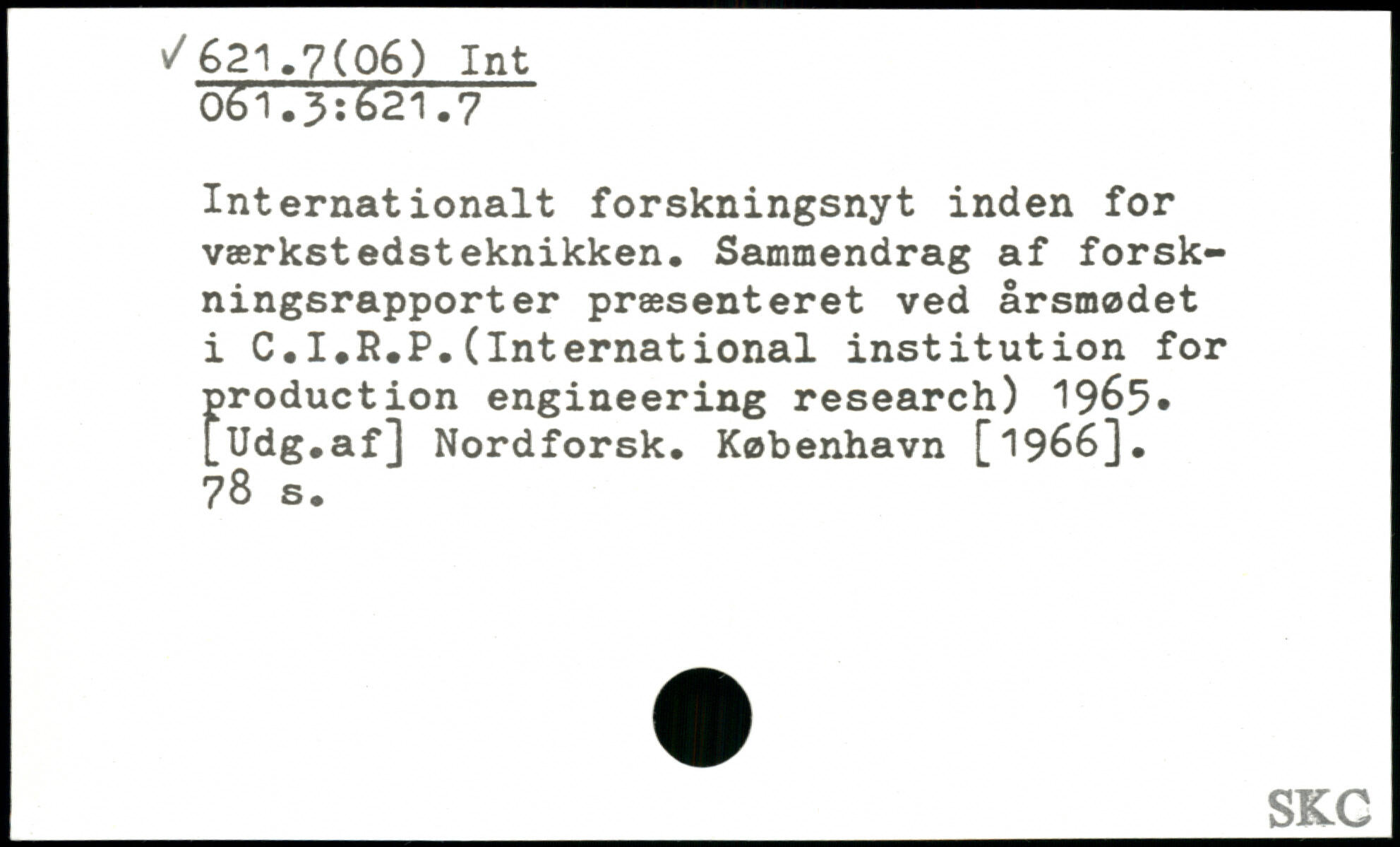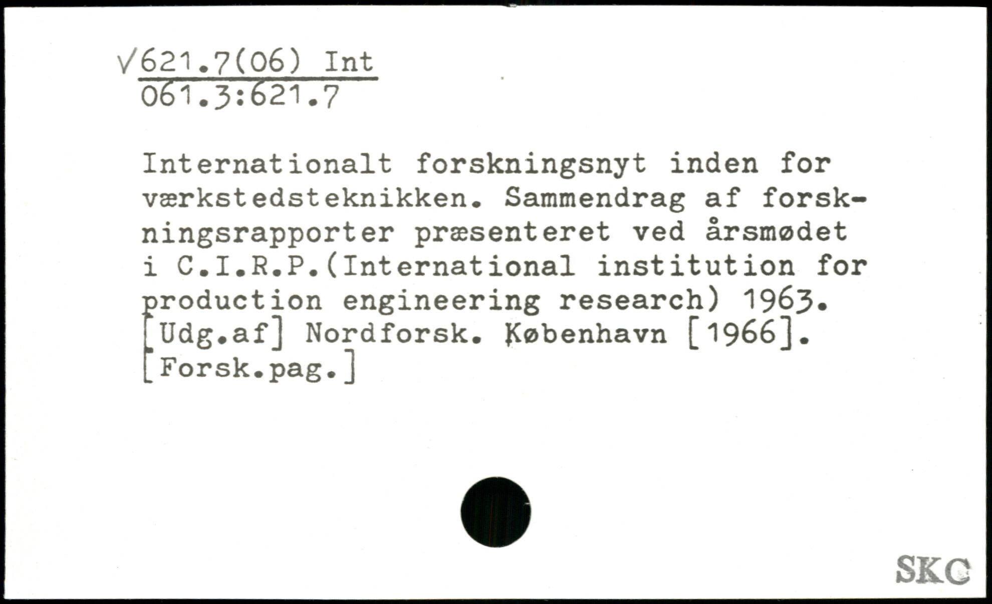 Internationalt forskningsnyt inden for værkstedsteknikken. Sammendrag af forskningsrapporter præsenteret ved årsmødet i C.I.R.P.(International institution for production engineering research) 1963. Udg.af] Nordforsk.
