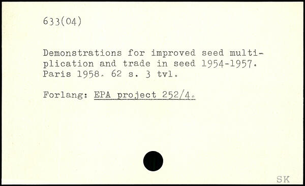 Demonstrations for improved seed multiplication and trade in seed 1954-1957.