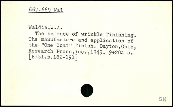 The science of wrinkle finishing. The manufacture and application of the "One Coat" finish. Dayton,Ohio, Research Press,inc.,1949-