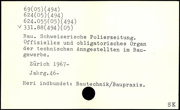 Bau. Schweizerische Polierzeitung. Offizielles und obligatorisches Organ der technischen Anngestellten im Baugewerbe. Zürich 1967- Jahrg.46-