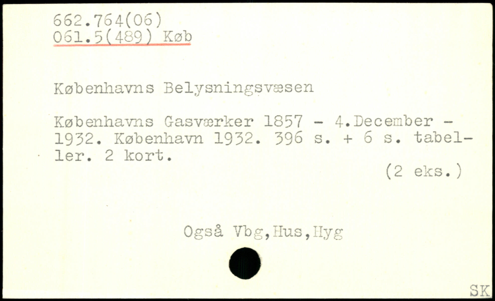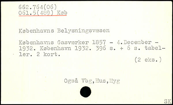 Købenliavns Belysningsvæsen Københavns Gasværker 1857 - 4.December -1952.