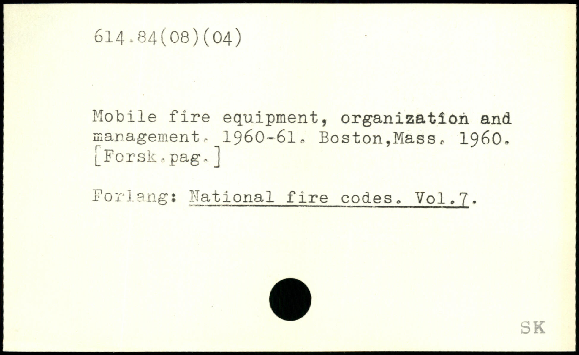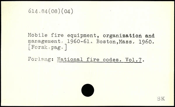 Mobile fire equipment, organization and management, 1960-6I0