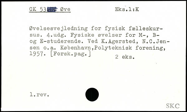 Øvelsesvejledning for fysisk fælleskursus. 4,U-dg. Fysiske øvelser for M-, B-og E-studerende. Ved K.Agersted, N.C.Jensen o.a.