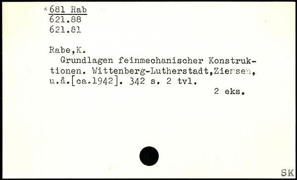 Grundlagen feinmechanischer Konstruktionen. Wittenberg-Lutherstadt,Ziersen, u.ä,[ca. 1942].