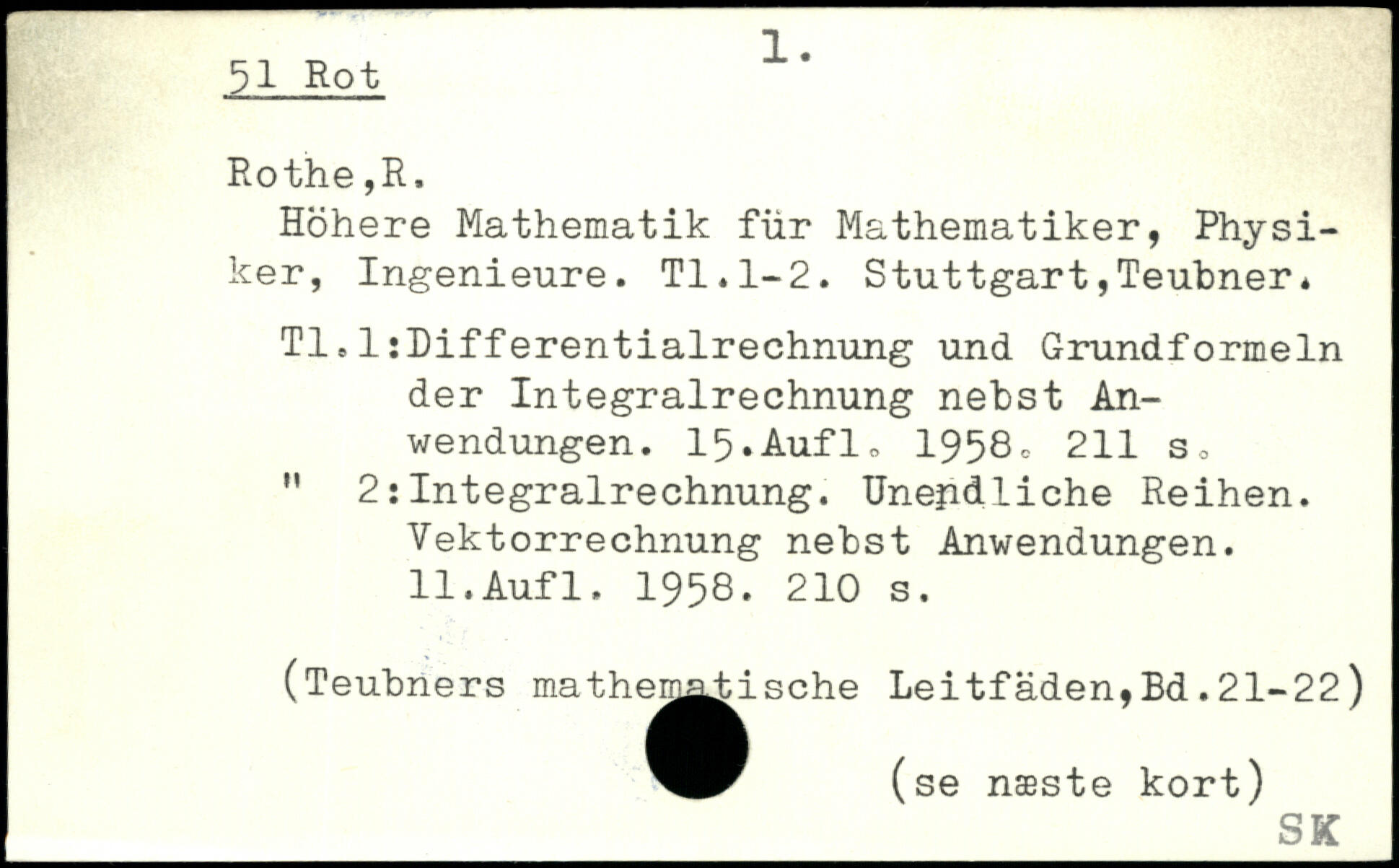 Höhere Mathematik für Mathematiker, Physiker, Ingenieure. TI.1-2. Stuttgart,Teübner. TI,1:Differentialrechnung und Grundformeln der Integralrechnung nebst Anwendungen.