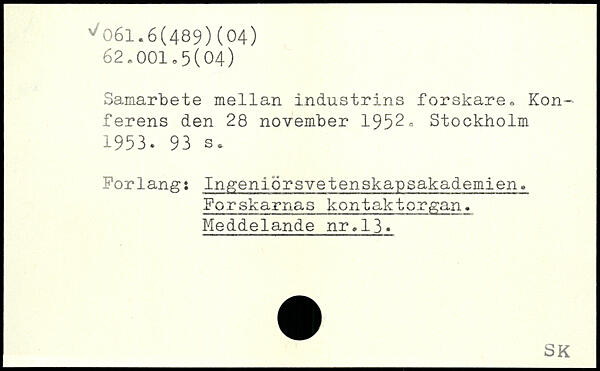 Samarbete mellan industrins forskare, Konferens den 28 november 1952=