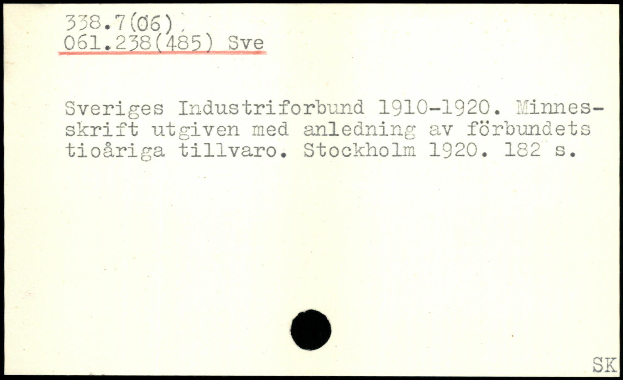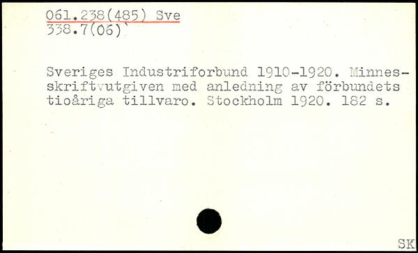 Sveriges Industriförbund 1910-1920. Minnesskrift utgiven med anledning av förbundets tioåriga tillvaro.