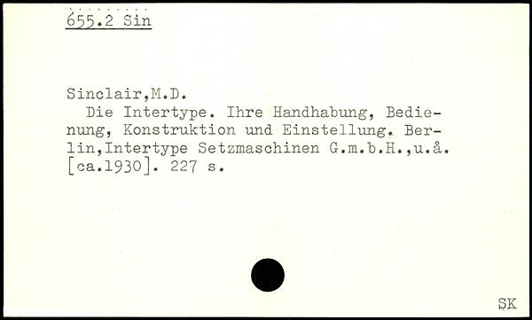 Die Intertype. Ihre Handhabung, Bedienung, Konstruktion und Einstellung. Berlin, Intertype Setzmaschinen G.m.b.H.,u.ä.