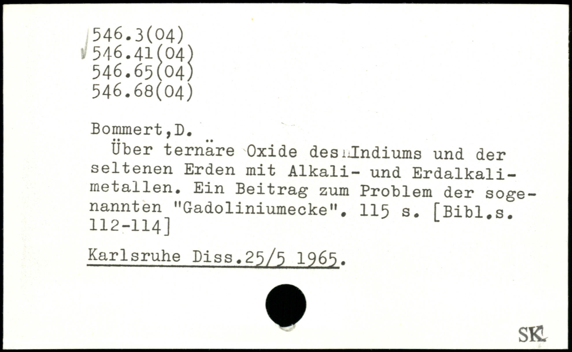 Über ternäre Oxide desiJndiums und der seltenen Erden mit Alkali- und Erdalkalimetallen. Ein Beitrag zum Problem der sogenannten "Gadoliniumecke',.