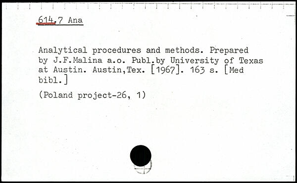 Analytical procedures and methods. Prepared by J.F.Malina a.o.