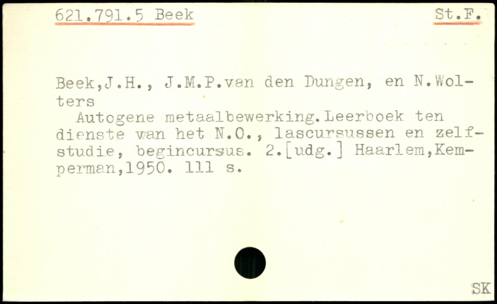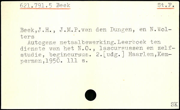 t.F, Beek,J.H., J.M.P.van den Bungen, en N.Wolters Autogene metaalbewerking. Leerboek ten dienste van het kT.G. , lascursussen en zelf-Studie, begincursus. 2.j_udg.]