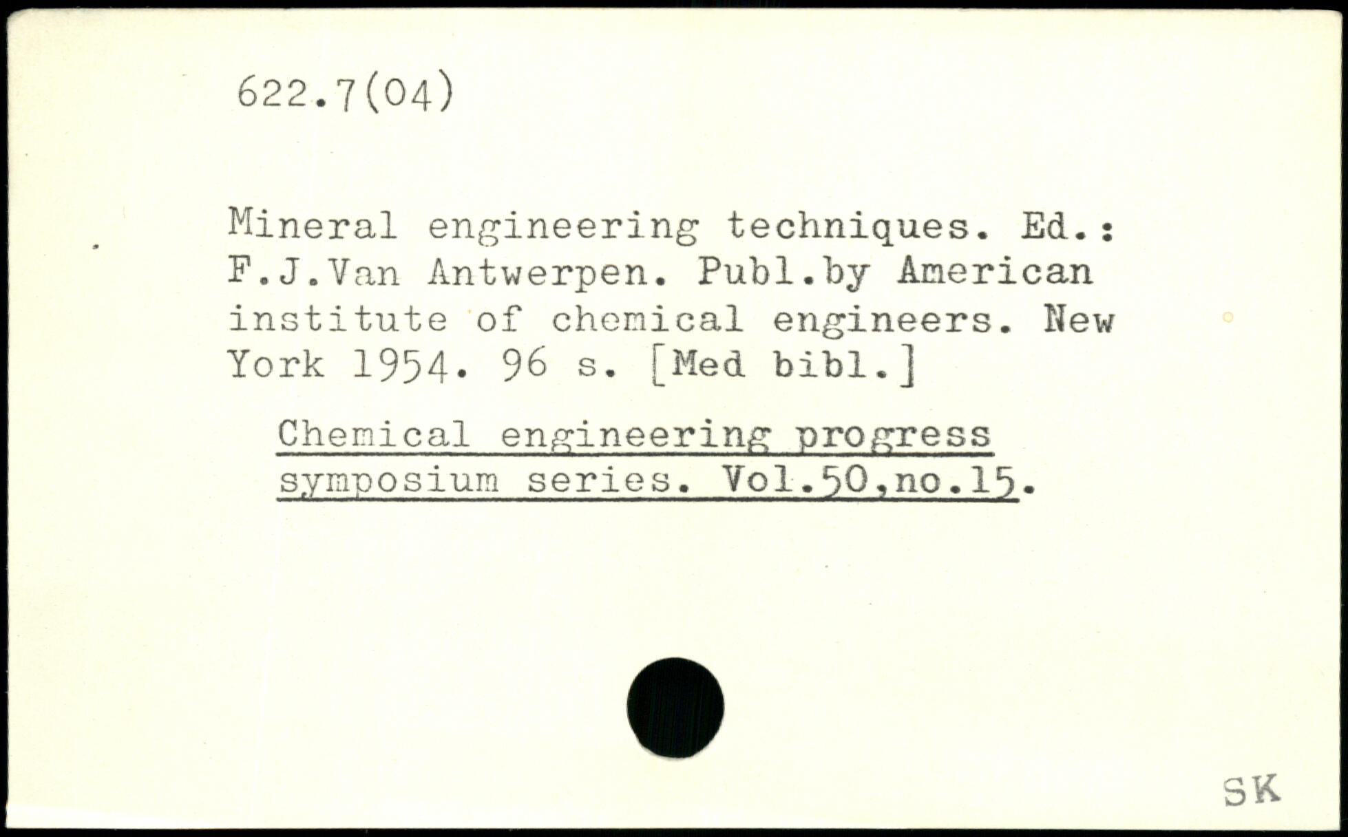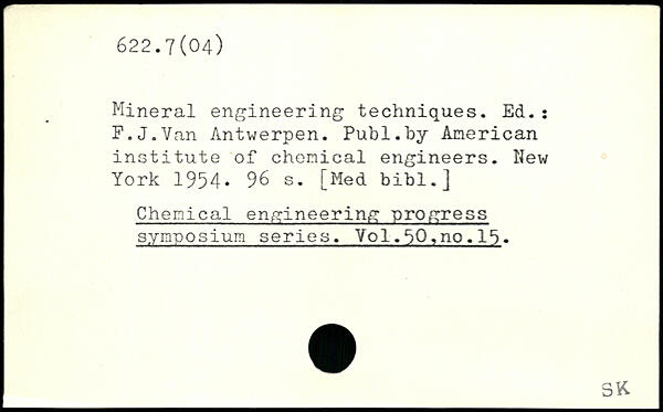 Mineral engineering techniques. Ed.: P.J.Van Antwerpen.