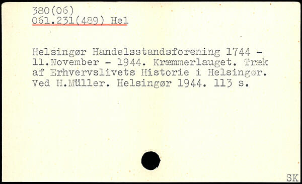 Helsingør Handelsstandsforening 1744 -11.November - 1944. Kræmmerlauget. Træk af Erhvervslivets Historie i Helsingør. Ved H.Muller. Helsingør 1944.
