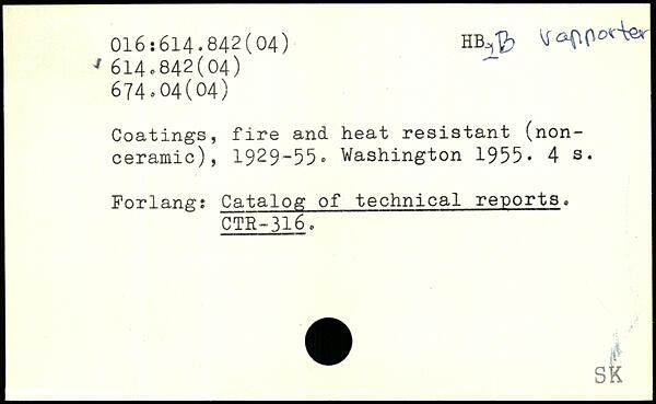 Coatings, fire and heat resistant (non-; ceramic), 1929-55.