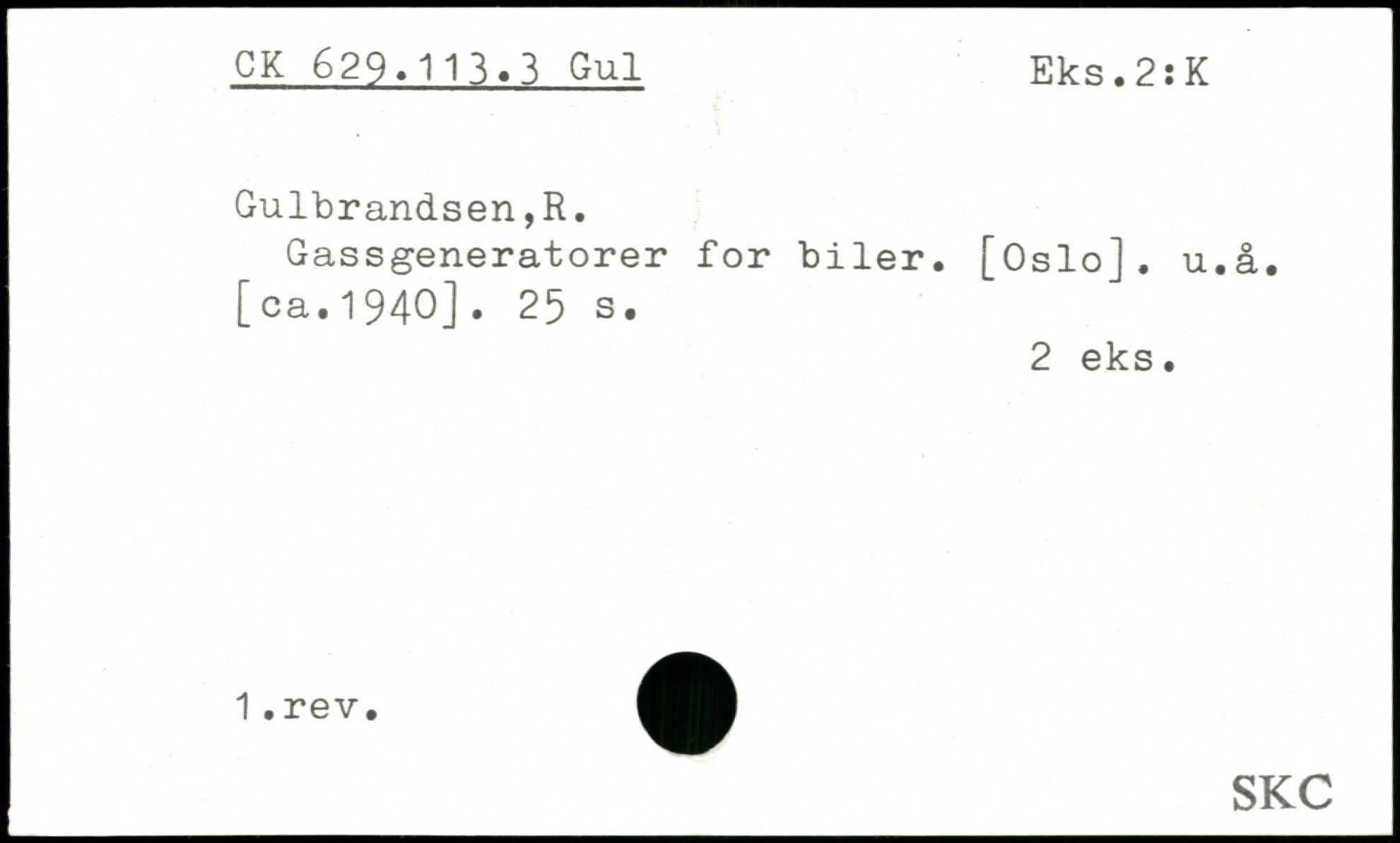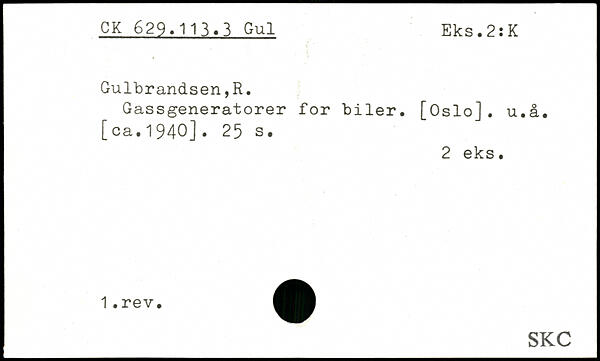 Gassgeneratorer for biler. [Oslo], u.å. [ca.1940].