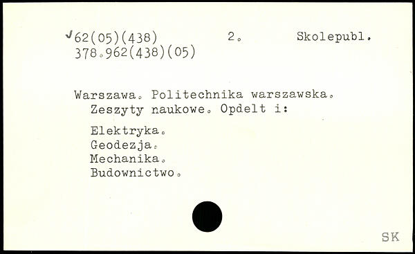 Warszawa^ Politechnika warszawska, Zeszyty naukoweo Opdelt i i Elektryka 0 Geodez ja,, Mechanika 0 Budownictwo 0