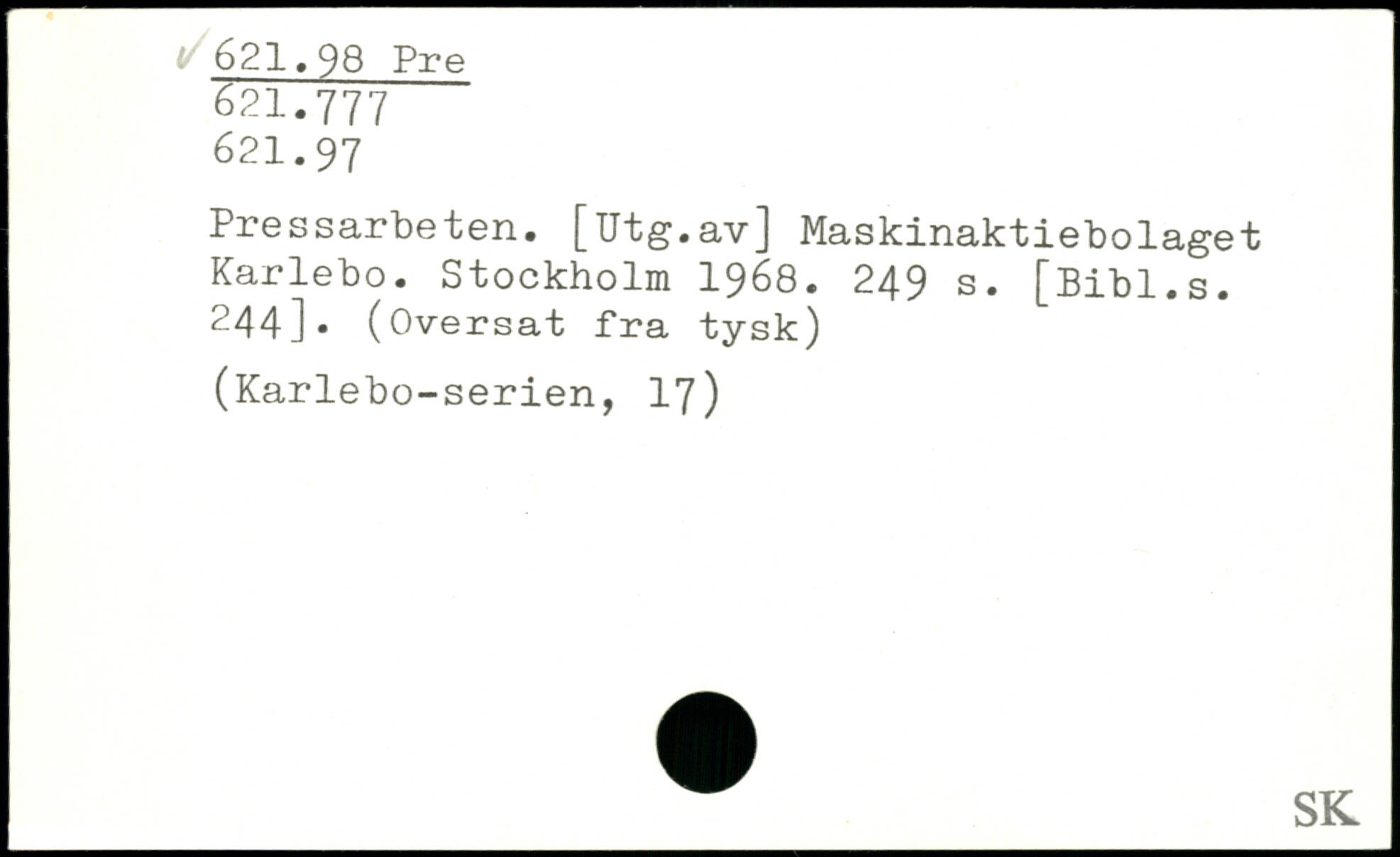 Pressarbeten. [Utg.av] Maskinaktiebolaget Karlebo.