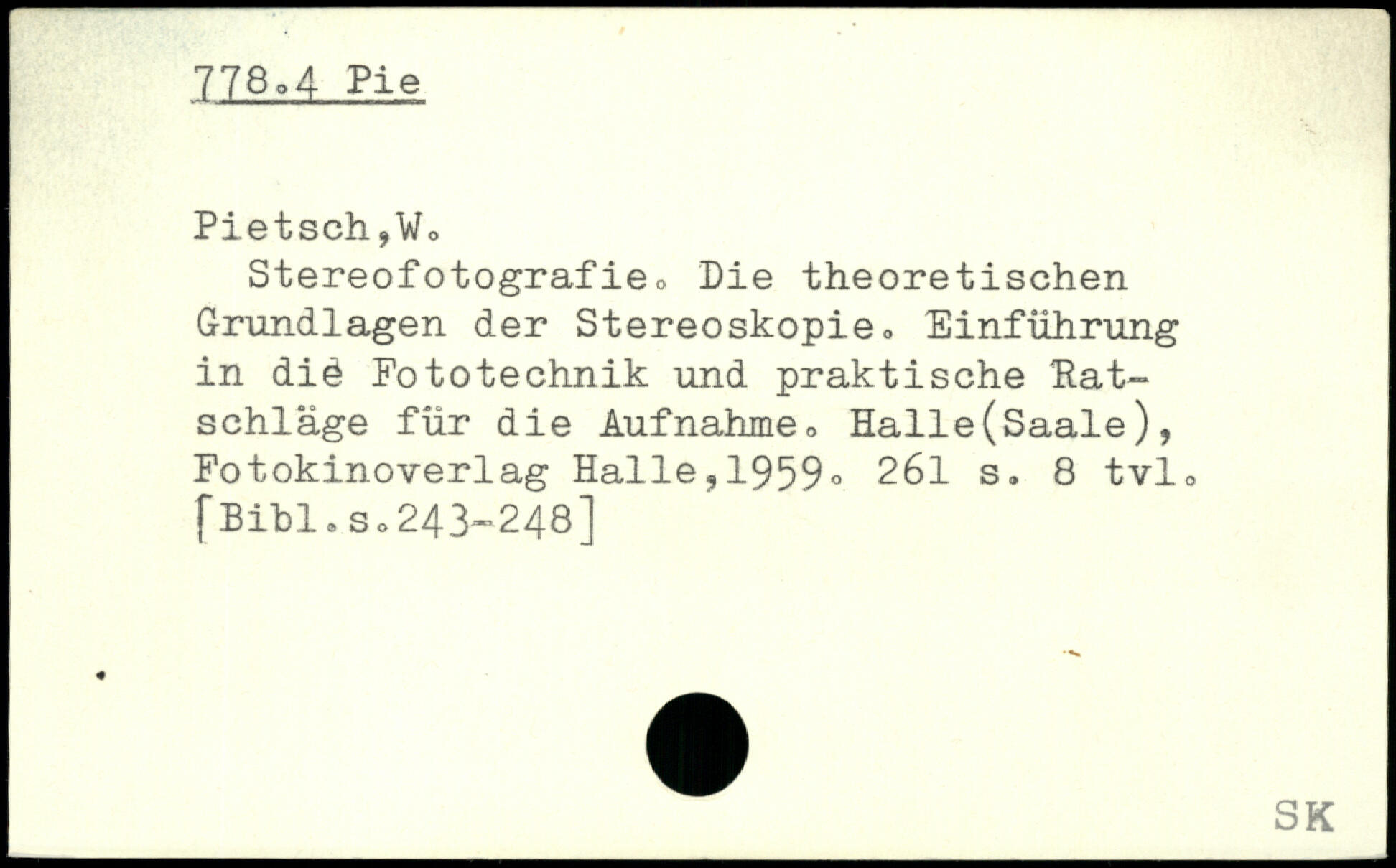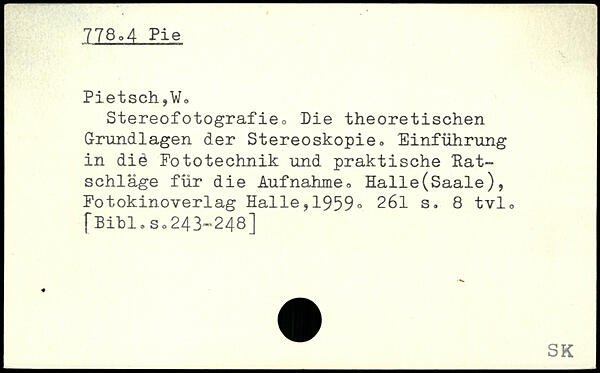 Stereofotografie, Die theoretischen Grundlagen der Stereoskopie, Einführung in did Fototechnik und praktische Ratschläge für die Aufnahme, Halle(Saale), Fotokinoverlag Halle,1959