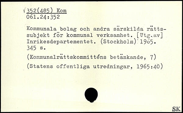 Kommunala bolag och andra sarskilda rättssubjekt för kommunal verksamhet. [TJtg.av] Inrikesdepartementet. (Stockholm)’ 19o5