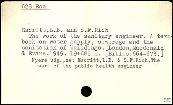 The work of the sanitary engineer. A text-hook on water supply, sewerage and the sanitation of buildings. London,lacdonald & Evans,1949.