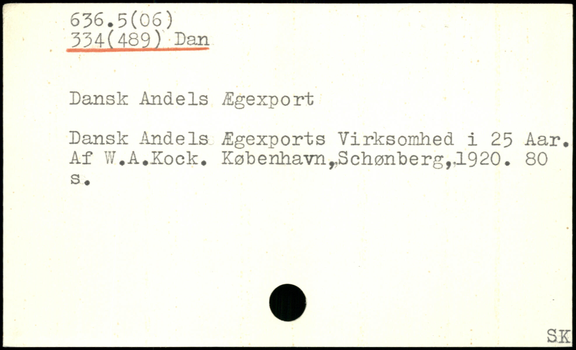 Dansk Andels Ægexport Dansk Andels Ægexports Virksomhed i 25 Aar. Af W.A.Kock. KøbenhavnrSchønberg,.1920.