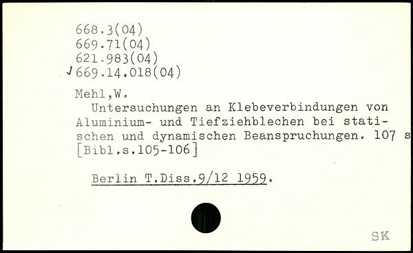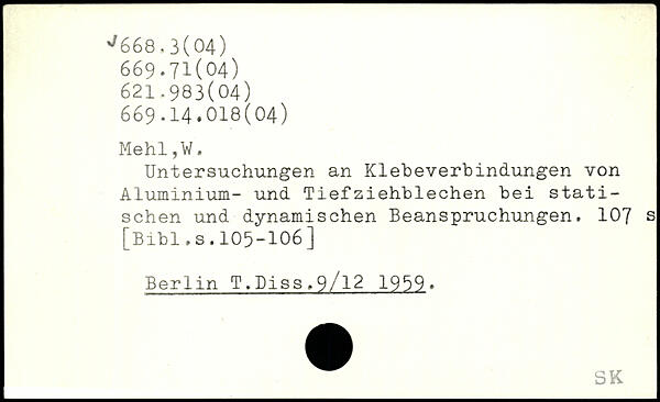 Untersuchungen an Kleheverbindungen von Aluminium- und Tiefziehblechen bei statischen und dynamischen Beanspruchungen