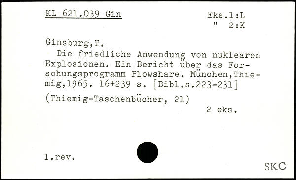 Die friedliche Anwendung von nuklearen Explosionen, Ein Bericht über das Forschungsprogramm Plowshare.