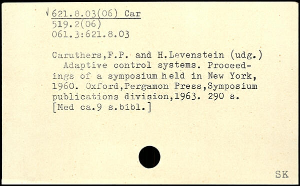 Adaptive control systems. Proceedings of a symposium held in New York, 1960.