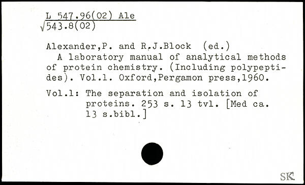 A laboratory manual of analytical methods of protein chemistry, (including polypeptides).