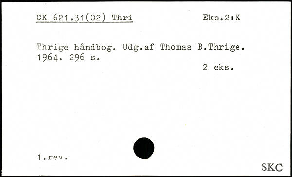 Thrige håndbog. Udg.af Thomas B.Thrige. 1964.