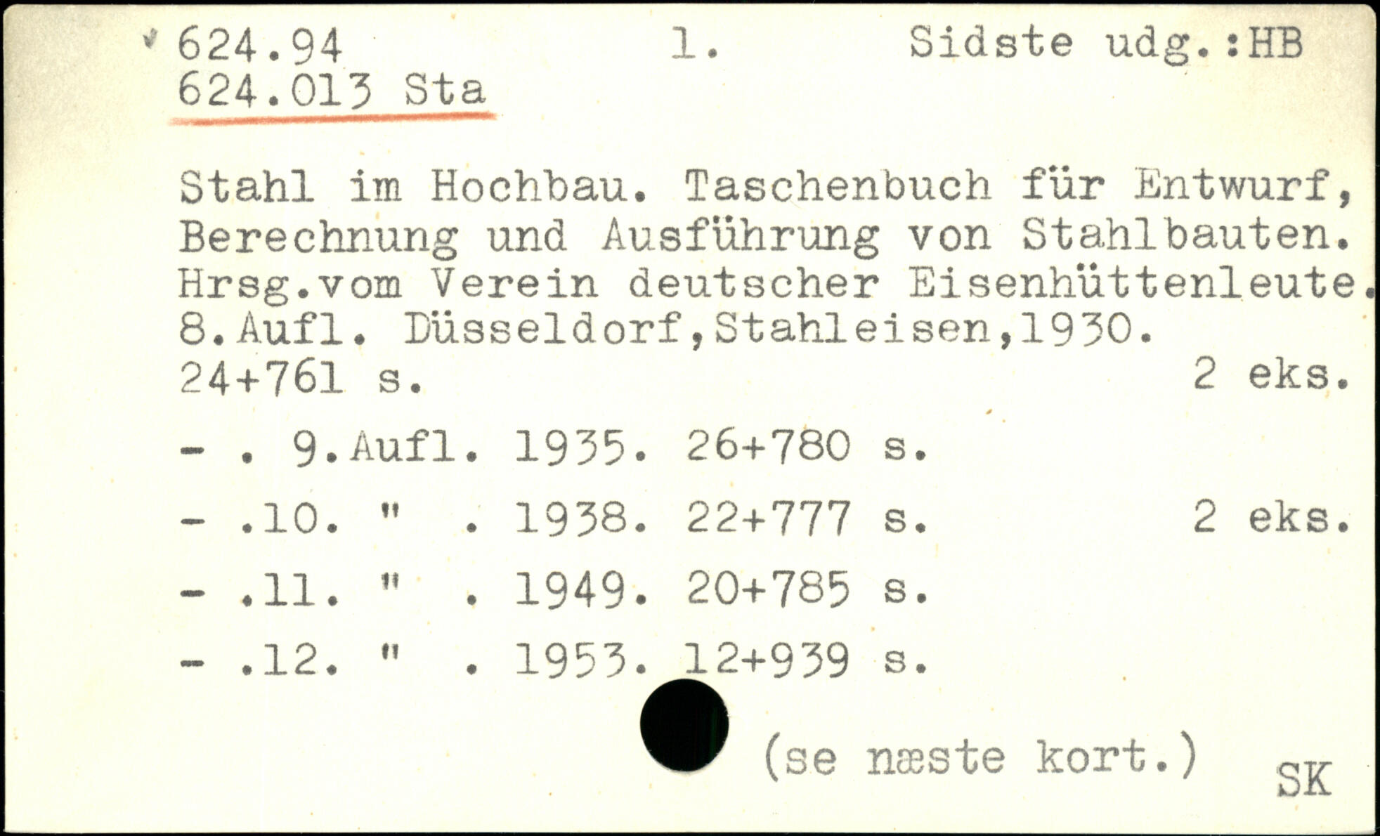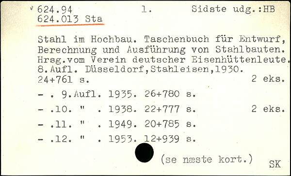 Stahl im Hochbau. Taschenbuch für Entwurf, Berechnung und Ausführung von Stahlbauten. Hrsg.vom Verein deutscher Eisenhüttenleute