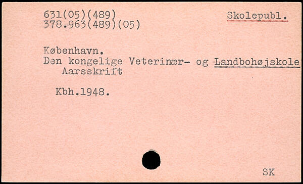 ben kongelige Veterinær- og Landbohøjskole Aarsskrift Kbh.1948.