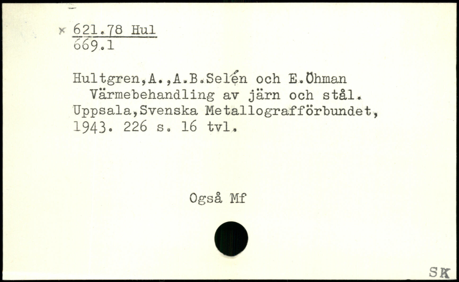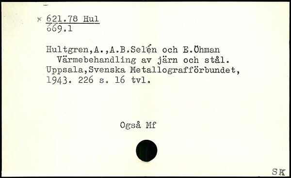 Hultgren,A.,A.B.Selen och E.öhman Varmebehandling av järn och stål.
