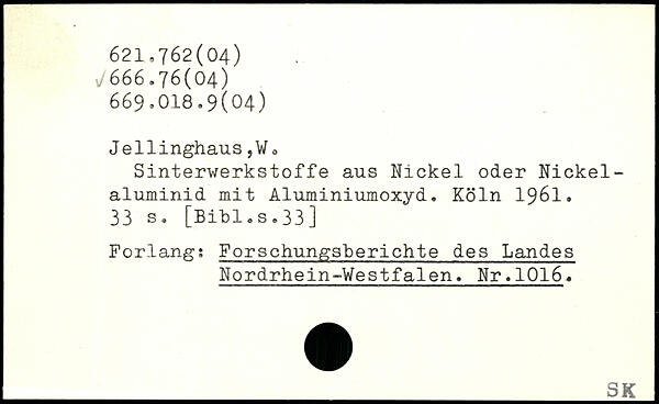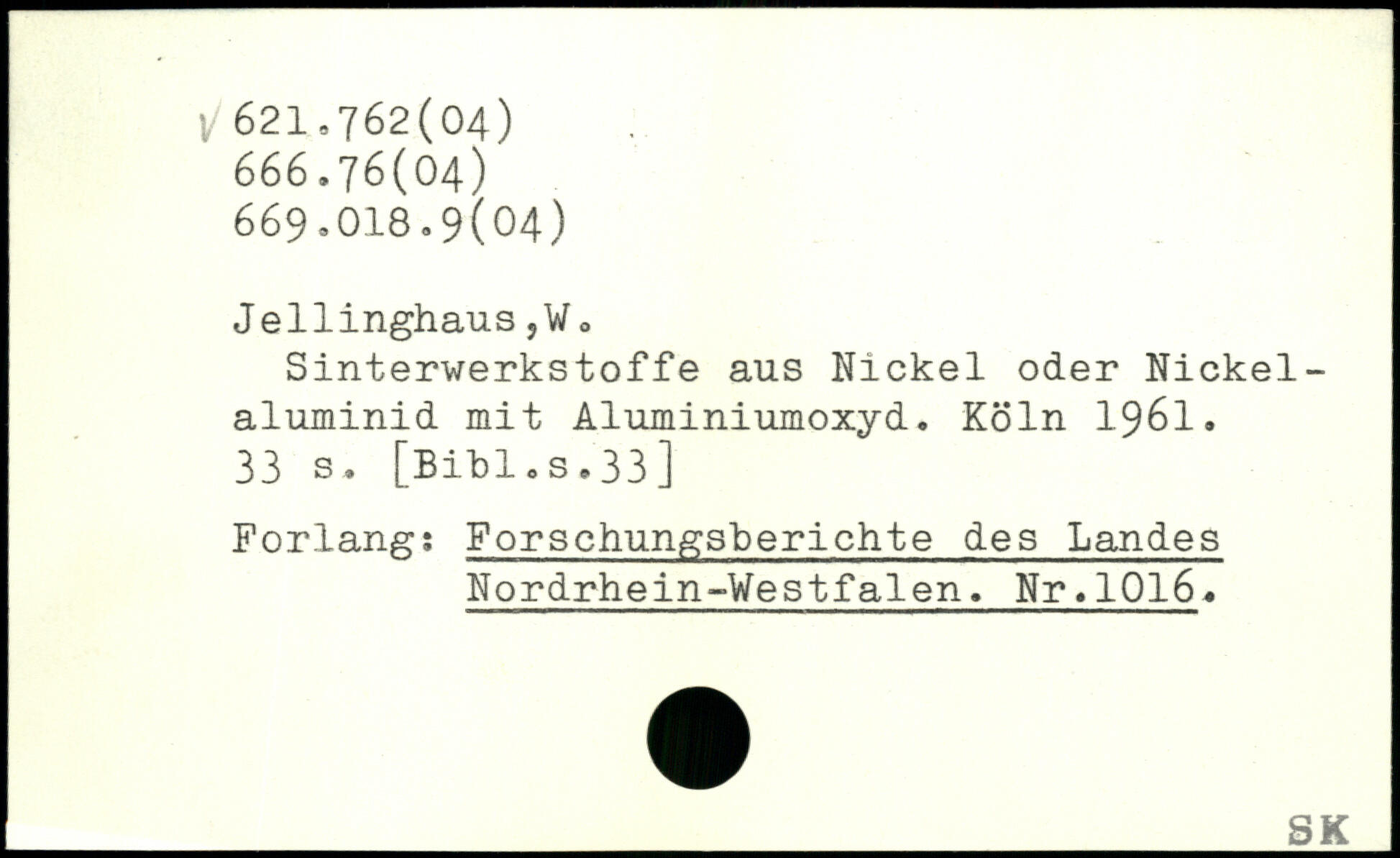 Sinterwerkstoffe aus Nickel oder Nickel-aluminid mit Aluminiumoxyd. Köln