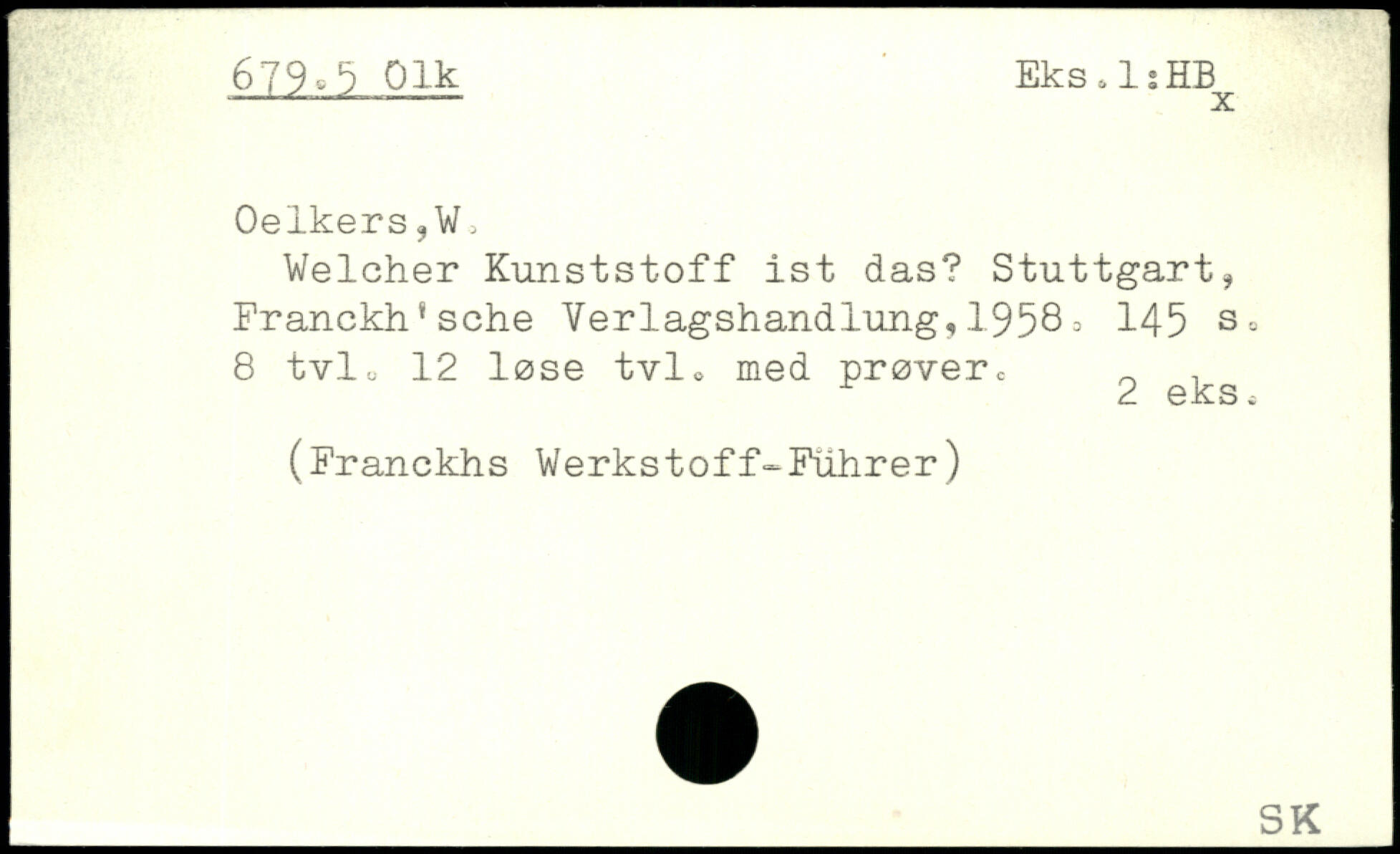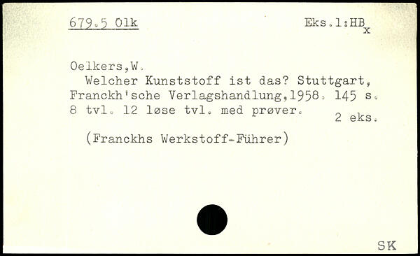 Welcher Kunststoff ist das? Stuttgart, Franckh'sche Verlagshandlung,1958> 145 8 tvlu 12 lose tvlo med prover.- ^ e^s