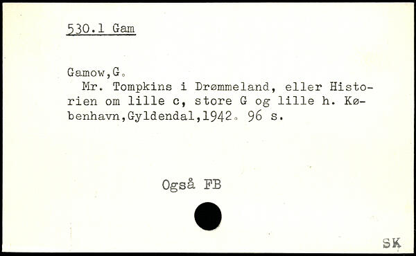 Mr. Tompkins i Drømmeland, eller Historien om 1111e c, store G og 1111e h. København, Gyldendal, 194 2