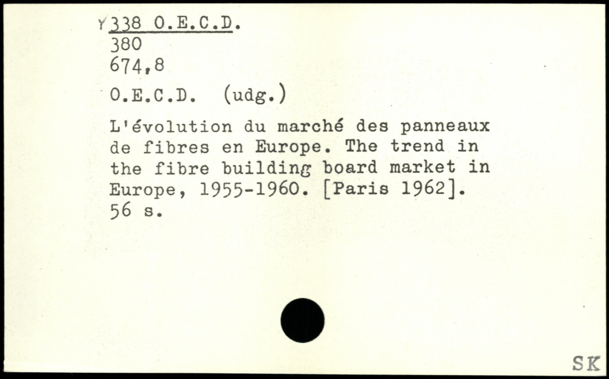 L’évolution du marché des panneaux de fibres en Europe. The trend in the fibre building board market in Europe, 1955-1960.