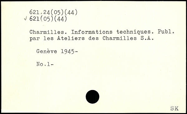 Charmilles. Informations techniques. Puhl. par les Ateliers des Charmilles S.A. Geneve 1945- No,1-