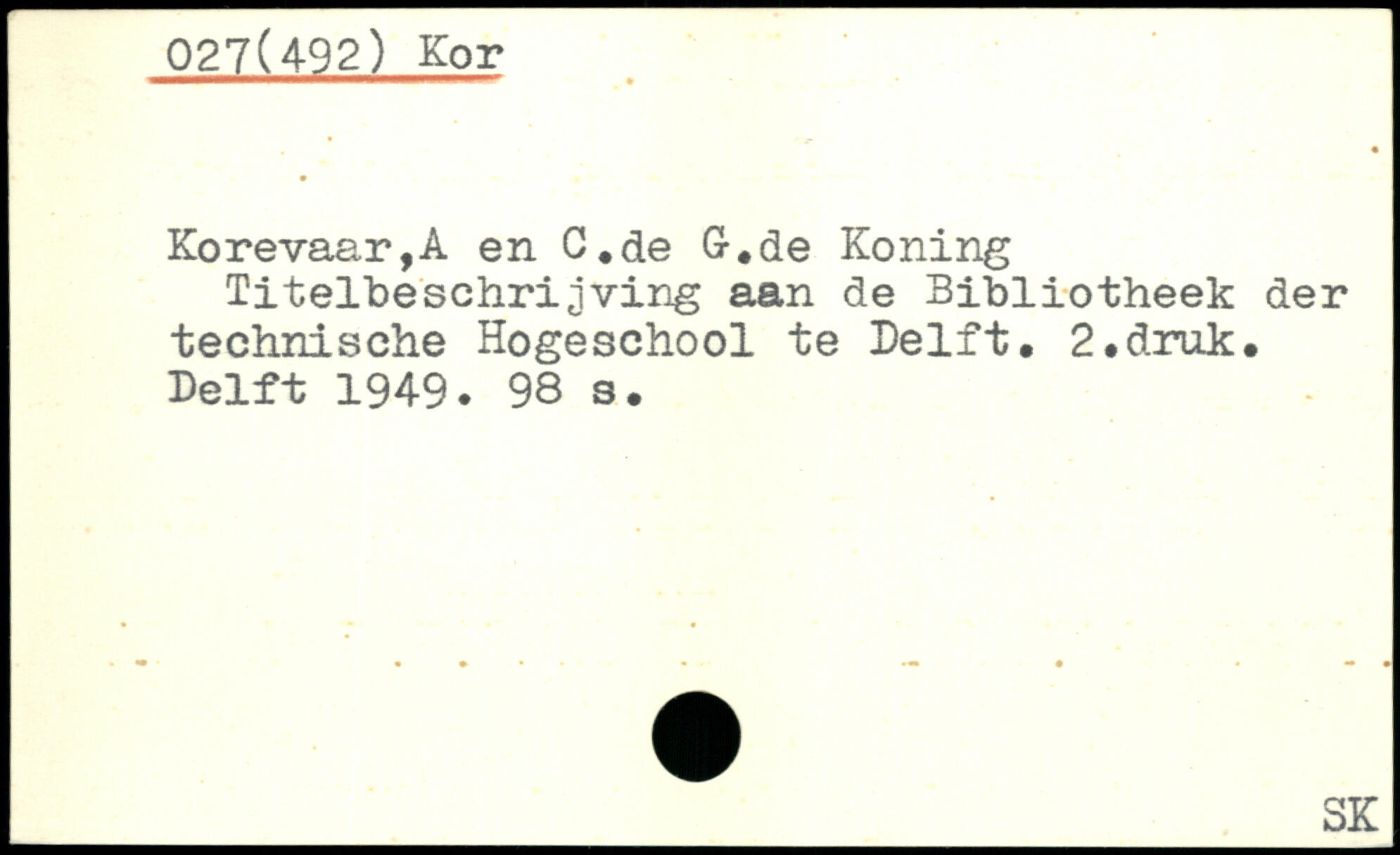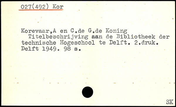 Korevaar,A en C.de G-.de Koning fitelbeschrijving aan de Bibliotheek der technische Hogeschool te Delft. 2.druk. Delft 1949.