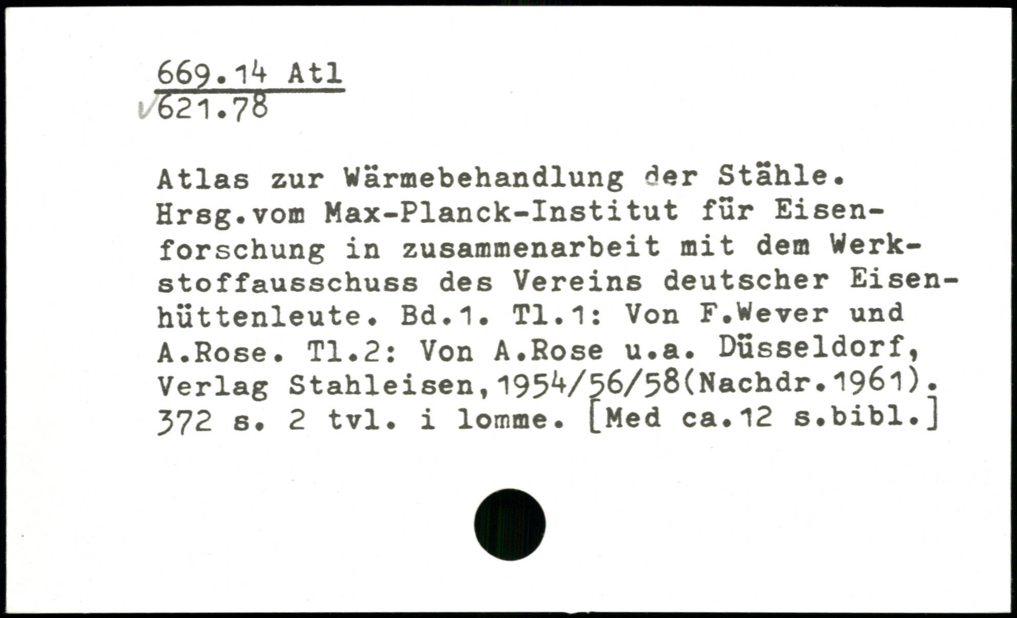 Atlas zur Wärmebehandlung der Stähle. Hrsg.vom Max-Planck-Institut für Eisenforschung in Zusammenarbeit mit dem Werkstof fausschuss des Vereins deutscher Eisenhüttenleute.