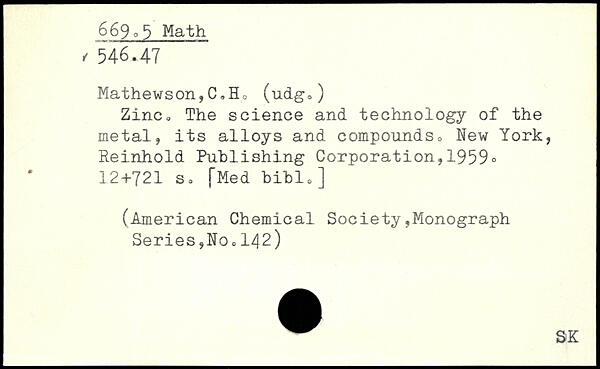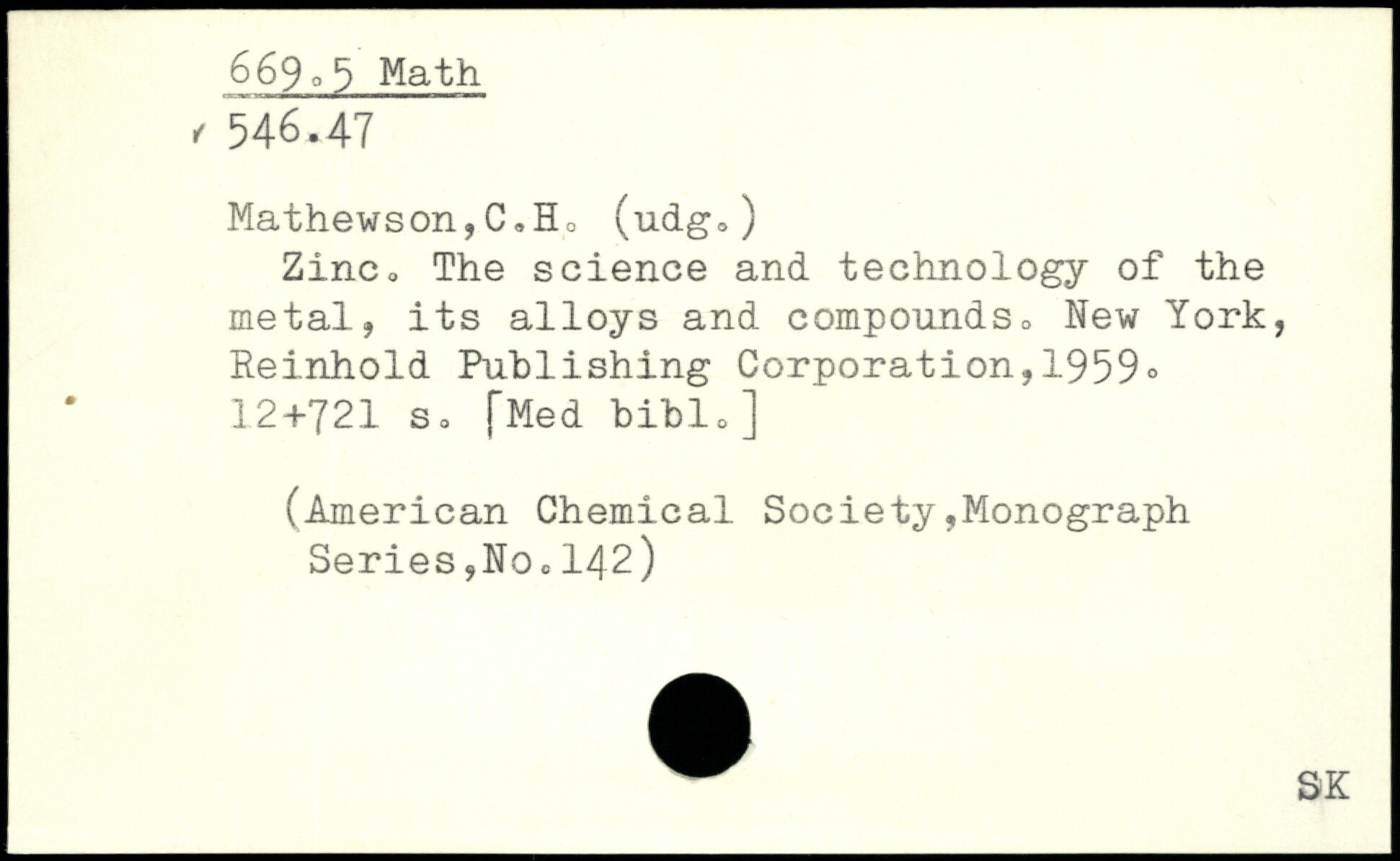 Mathewson,C,H = (udg=) Zinc, The science and technology of the metal, its alloys and compounds