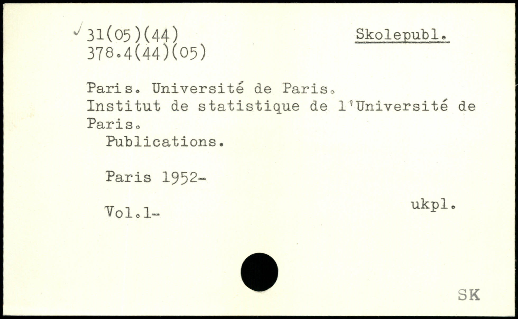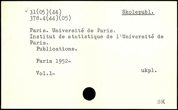 Paris. Université de Paris. Institut de statistique de l'Université de Paris. Publications.