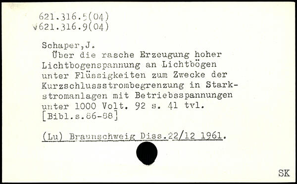 über die rasche Erzeugung hoher Lichtbogenspannung an Lichtbögen unter Flüssigkeiten zum Zwecke der Kurzschlussstrombegrenzung in Starkstromanlagen mit Betriebsspannungen unter 1000 Volt.