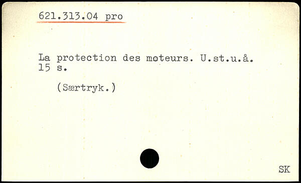 La protection des moteurs. U.st.u.à.