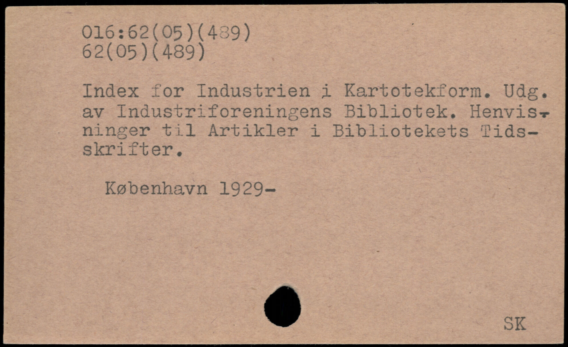 Index for Industrien X Kartotekform. Udg. av Industriforeningens Bibliotek. Henvis-r ninger til Artikler i Bibliotekets lids-skrifter.