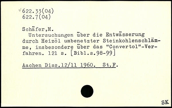 Untersuchungen über die Entwässerung durch Heizöl umbenetzter Steinkohlenschlämme, insbesondere über das "ConvertolM-Ver-fahren.