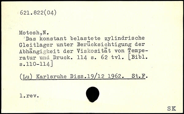 Das konstant "belastete zylindrische Gleitlager unter Berücksichtigung der Abhängigkeit der Viskosität von Temperatur und Druck.