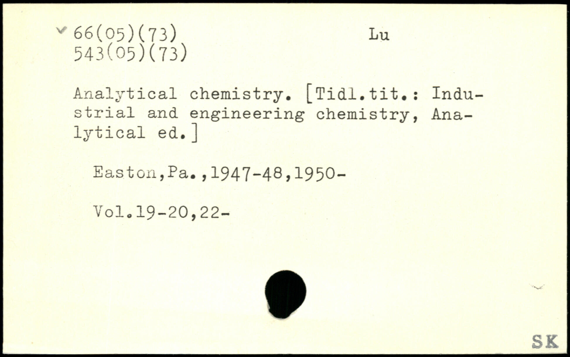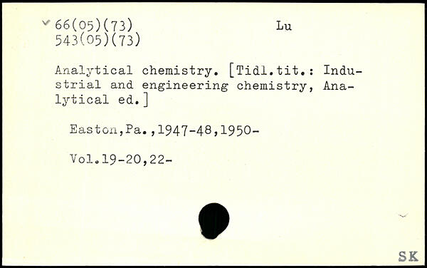 Analytical chemistry. [Tidl.tit.: Indu-strial and engineering chemistry, Analytical ed. ]